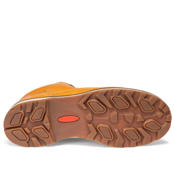 Außen ist sattes, gewachstes Nubuk–Spaltleder verarbeitet; innen kommt chromfrei gegerbtes Lederfutter an den Fuß. Der mittelhohe Schaft ist tief ausgeschnitten und komfortabel gepolstert. So schmiegt er sich weich um den Knöchel und bietet exzellenten Schutz und ein hohes Maß an Bewegungsfreiheit. Die Sohlenkonstruktion erweist sich durch die robuste, zwiegenähte Machart als besonders langlebig.